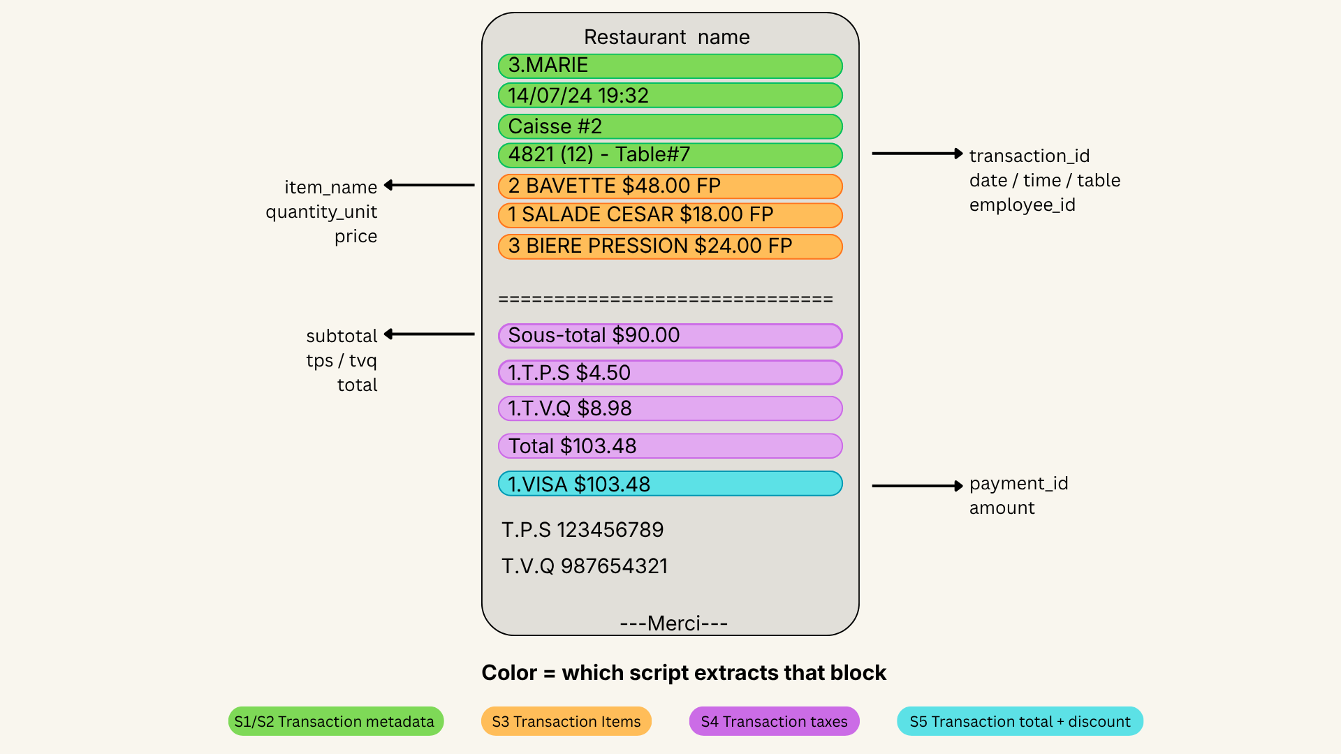 One receipt, five scripts, one clean schema